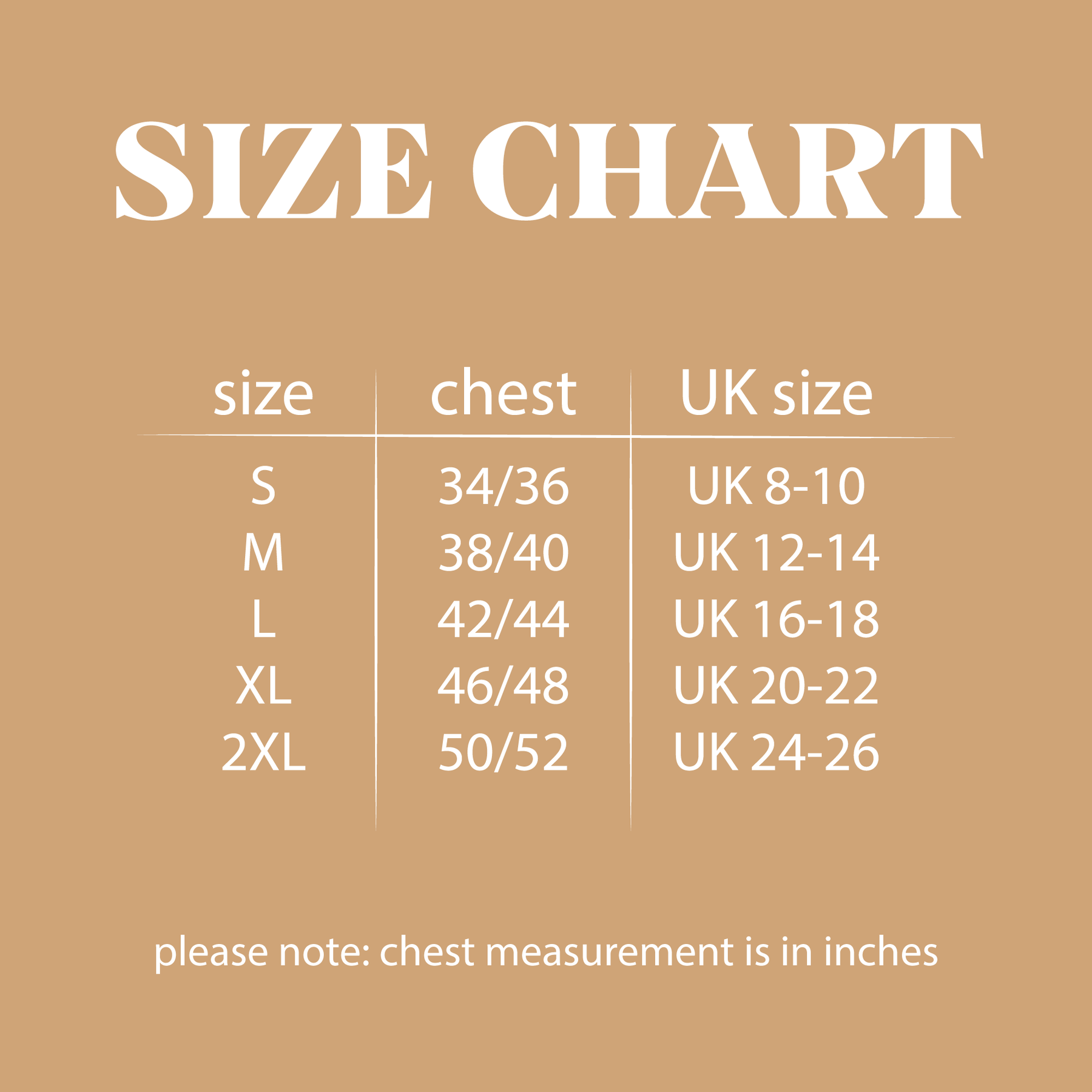 Please check the size chart before purchasing as we are unable to accept returns on clothing items.